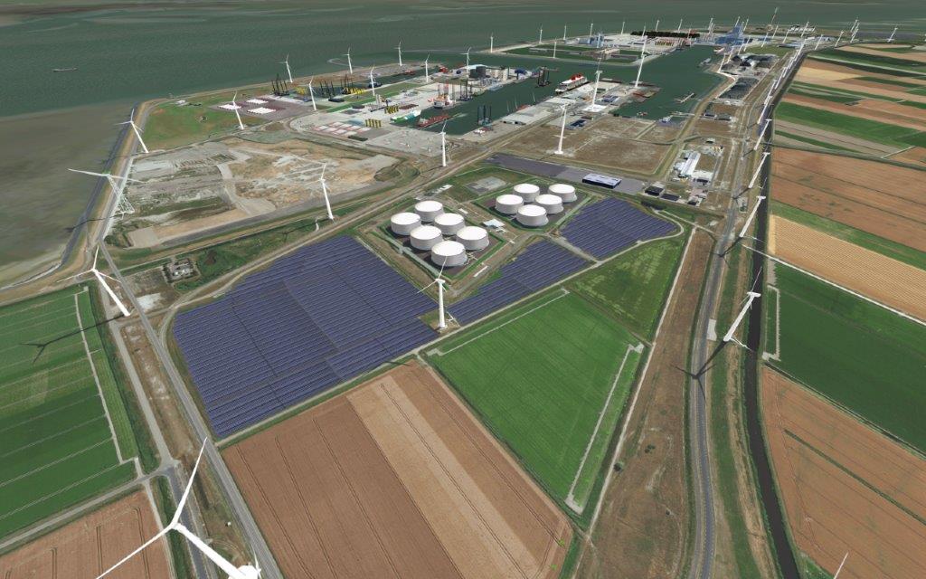 Artist impression of the 27 MW solar park adjacent to Vopak Terminal Eemshaven