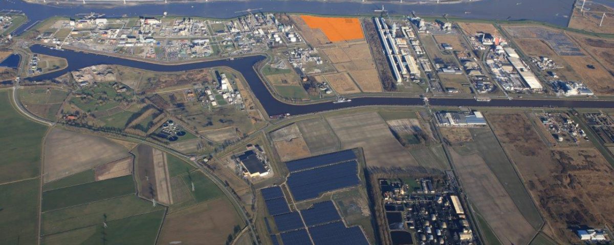Industrial area Oosterhorn in Delfzijl with the location (in orange) of SkyNRG