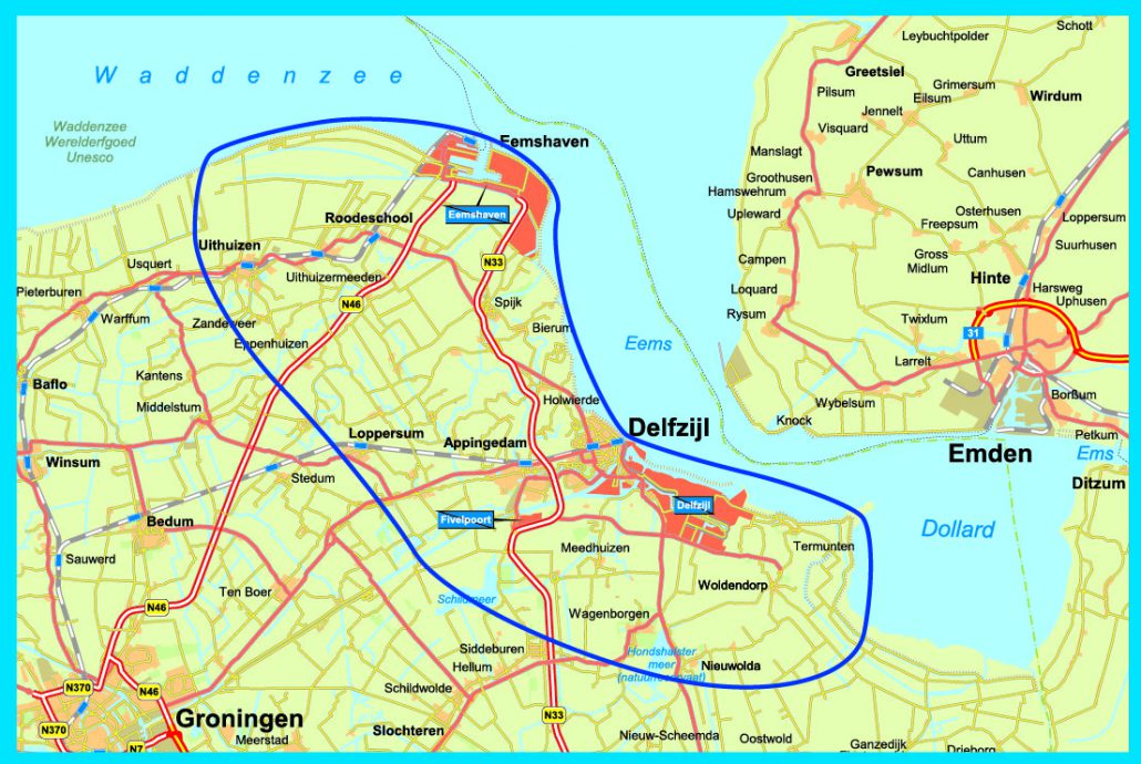 Het sponsorgebied van Groningen Seaports globaal op kaart