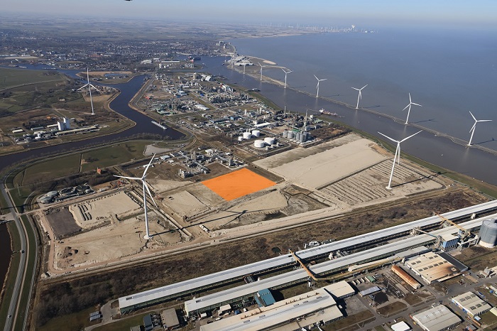 De locatie op bedrijventerrein Heveskes in Delfzijl waar Avantium begint met de bouw van haar FDCA fabriek (Foto Groningen Seaports – Koos Boertjens)