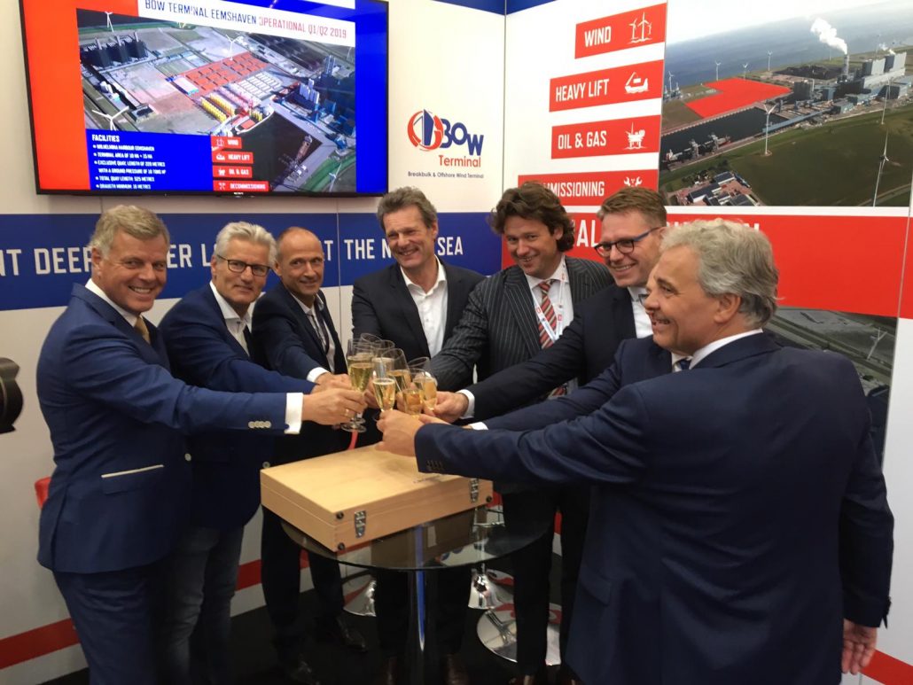 De nieuwe locatie van BOW Terminal in de Eemshaven is een feit! Daar wordt in de stand van BOW Terminal tijdens de Offshore Energy Exhibition & Conference een toost op uitgebracht.