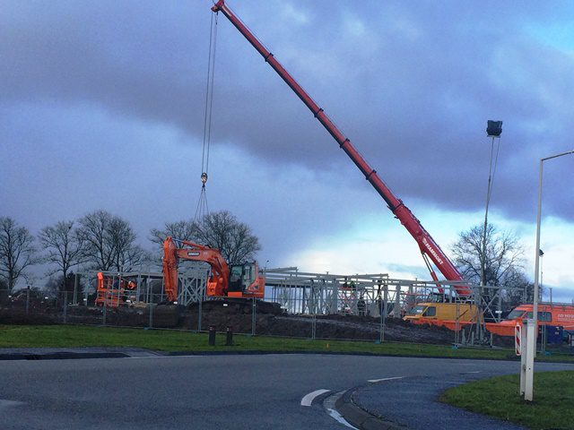Een deel van de verdiepingsvloer wordt aangebracht op het in aanbouw zijnde Centrum Veilig Wonen