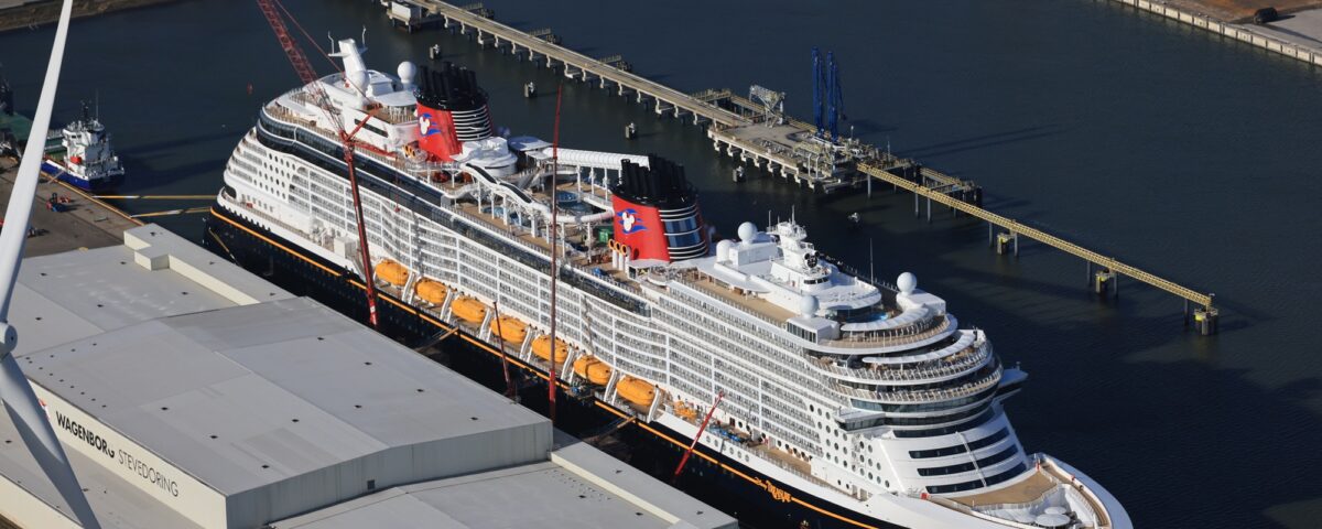 Van 19 september tot 29 oktober lag het cruiseschip Disney Treasure, afkomstig van de Meyer Werft in Papenburg, in de Eemshaven. Dit indrukwekkende cruiseschip is in de Julianahaven, aan de kade van Royal Wagenborg, verder afgebouwd en voorbereid op haar toekomstige reizen.
