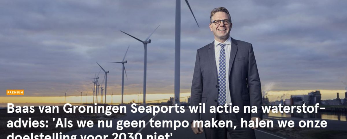 Artikel in Dagblad van het Noorden waarin CEO Cas König van Groningen Seaports reageert op het rapport van de Raad voor de leefomgeving en infrastructuur (Rli). Groene waterstof wordt als brandstof, grondstof en energiedrager een cruciale schakel in een duurzame Nederlandse economie. Dat schrijft de Rli in een advies voor regering en Tweede Kamer. König is blij met het waterstofadvies. ‘Het is een goed rapport”, zegt hij. ,,De raad ziet net als wij veel perspectief in waterstof. Wat wij al jarenlang uitdragen, dat het veel werkgelegenheid kan opleveren, wordt nu onderschreven. We zouden het rapport zelf geschreven kunnen hebben.”