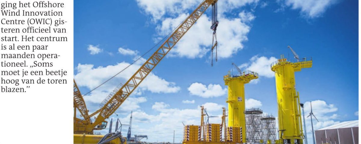 Artikel in Dagblad van het Noorden over de officiële opening van het Offshore Wind Innovation Centre (OWIC). In Eemshaven ging het Offshore Wind Innovation Centre donderdag officieel van start. Het centrum is al een paar maanden operationeel. ,,Soms moet je een beetje hoog van de toren blazen.’’