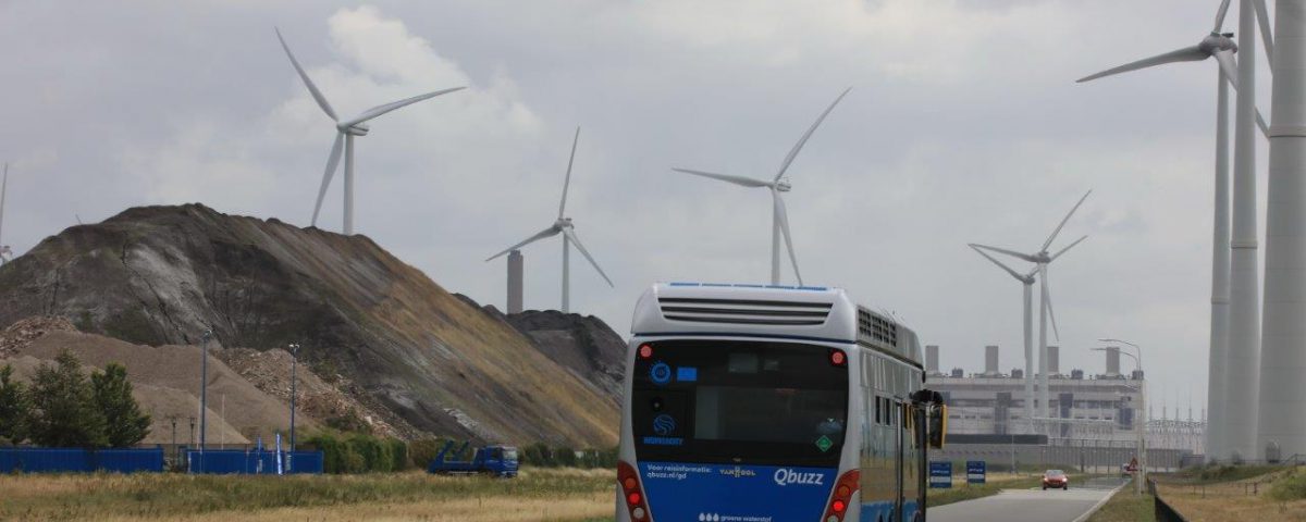 De waterstofbus van Qbuzz in de Eemshaven