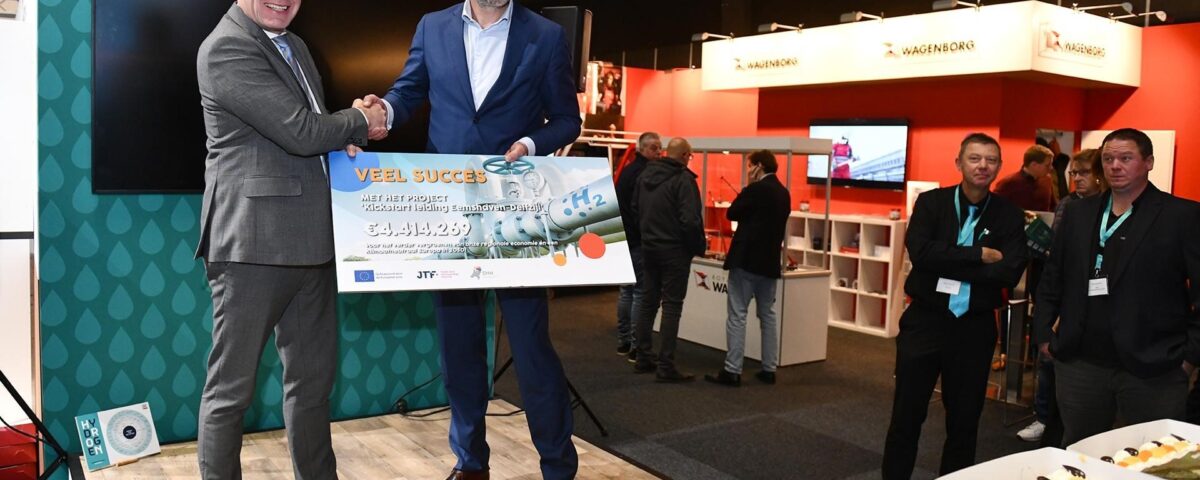 Groningen Seaports krijgt een Europese subsidie van ruim € 4.4 miljoen voor de aanleg van een innovatieve waterstofleiding tussen de Eemshaven en Delfzijl. Het geld komt uit het Just Transition Fund (JTF). Het Just Transition Fund is een Europees subsidieprogramma dat bijdraagt aan de overgang naar een Klimaatneutraal Europa. Gedeputeerde Henk Emmens overhandigde op 6 november tijdens de Groninger Promotiedagen in Martiniplaza symbolisch een cheque aan CEO Cas König van Groningen Seaports.