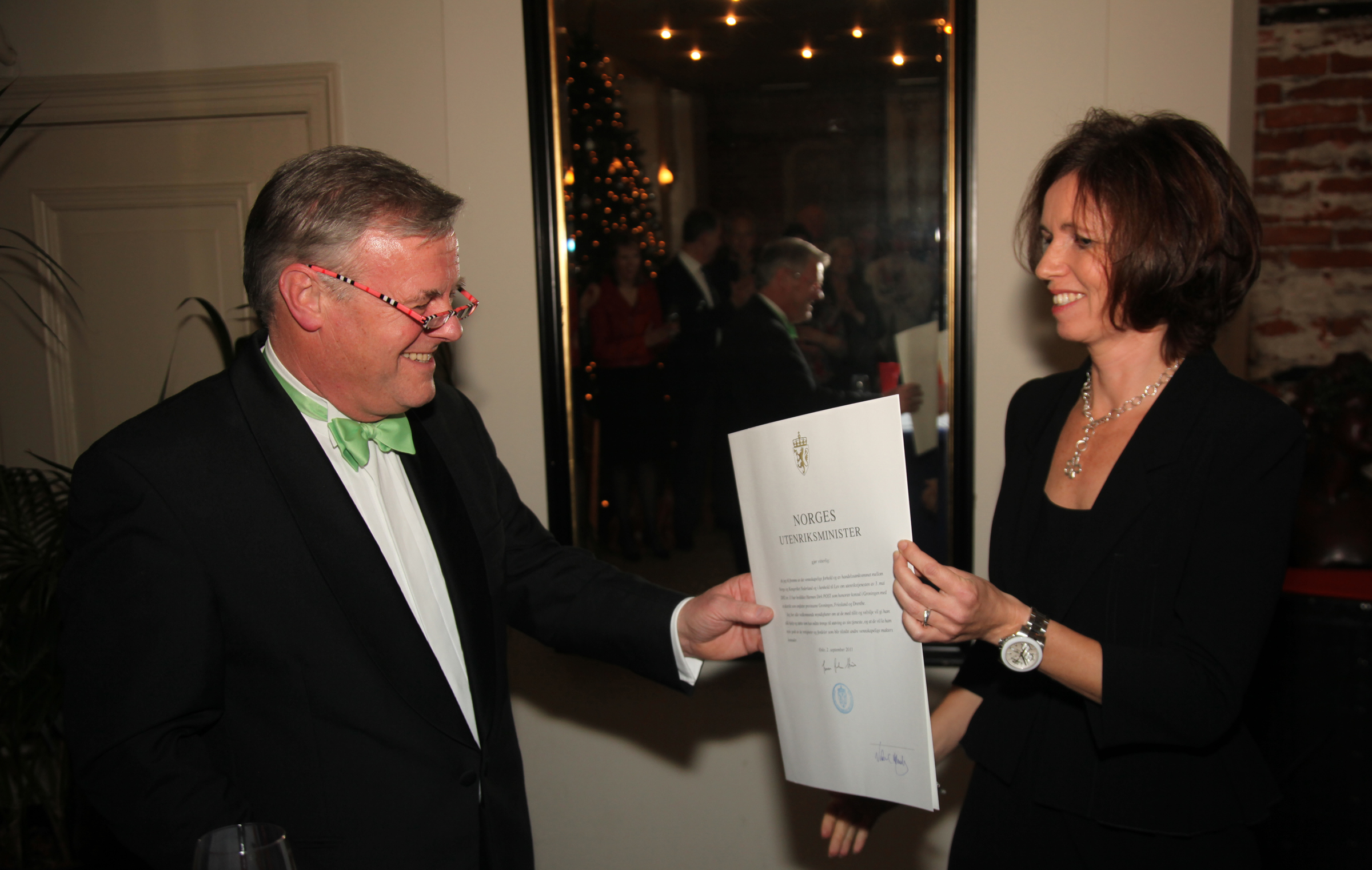 Op de foto zit u de officiële beëdiging die dinsdag 6 december heeft plaatsgevonden. Met de uitreiking van de oorkonde door de Noorse ambassadeur is Harm Post officieel de nieuwe consul van Noorwegen voor Groningen, Friesland en Drenthe.