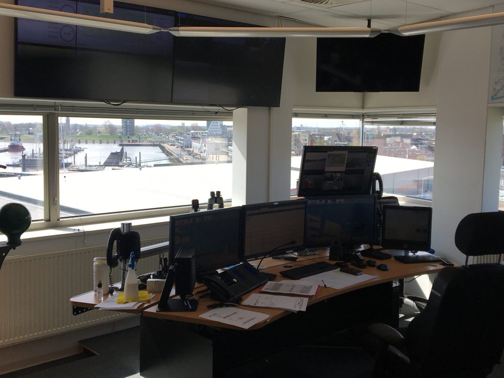 “Het Nautisch Service Centrum bestaat uit vijftien personen, inclusief havenmeester. Wij zijn verantwoordelijk voor het vlot, veilig en beveiligd afhandelen van het scheepvaartverkeer en alles wat er verder in de havens van Delfzijl en Eemshaven speelt. Dan heb ik het dus over de verkeersbegeleiding, 24 uur per dag, 7 dagen in de week, maar ook operations. Dus alle voorkomende vragen en ligplaatsindeling van schepen. De verkeersbegeleiders werken tijdens deze crisis per wacht afwisselend in Delfzijl of in de Eemshaven, waar wij een uitwijk(nood)locatie hebben. Die komt in deze tijd goed van pas. Dit betekent dat er geen fysiek contact of wachtoverdracht is, zodat bij een eventuele besmetting van een van de verkeersbegeleiders niet de hele ploeg aangestoken kan worden. Operations werkt vanaf huis en minimaal twee keer per dag hebben we een teamoverleg. De collega’s die zich bezig houden met de afhandeling van facturaties en onze nautische softwarespecialist werken ook vanuit thuis. Via videobellen zijn zij nu met verkeersbegeleiders, die geen dienst hebben, bezig om ons nieuwe haveninformatieverwerking systeem te testen, zodat we deze in mei kunnen uitrollen. Uiteraard doen we verder nog de fysieke rondes met de auto door het beheersgebied.”