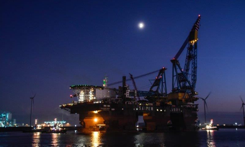 Imposant kraanschip Saipem 7000 terug in Eemshaven