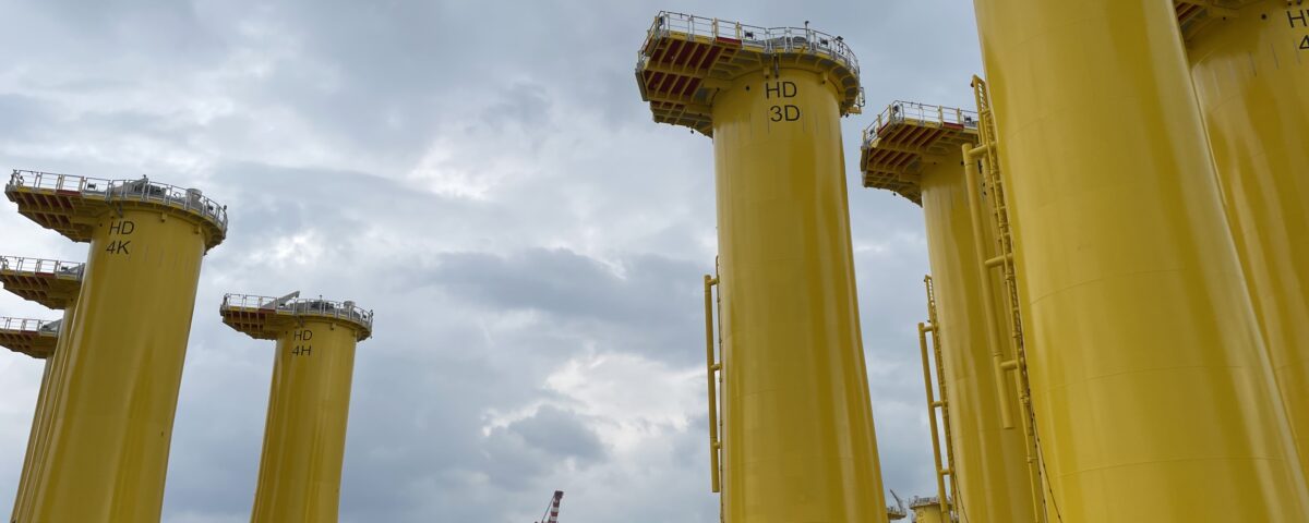Het terrein van Buss Terminal Eemshaven staat weer vol met windturbineonderdelen. Het transport en de installatie van het onderwaterdeel, de fundatiepalen en verbindingsstukken, van het Duitse windpark He Dreiht wordt via Buss Terminal Eemshaven geïnstalleerd. De onderdelen worden met pontons naar het windpark in aanbouw gesleept, waar het immense kraanschip Thialf van Heerema de feitelijke installatie uitvoert. Windpark He Dreiht bestaat uit 64 windturbines, levert een totaal vermogen van 960 MW en is het 22e windpark dat vanuit de Eemshaven wordt geïnstalleerd.
