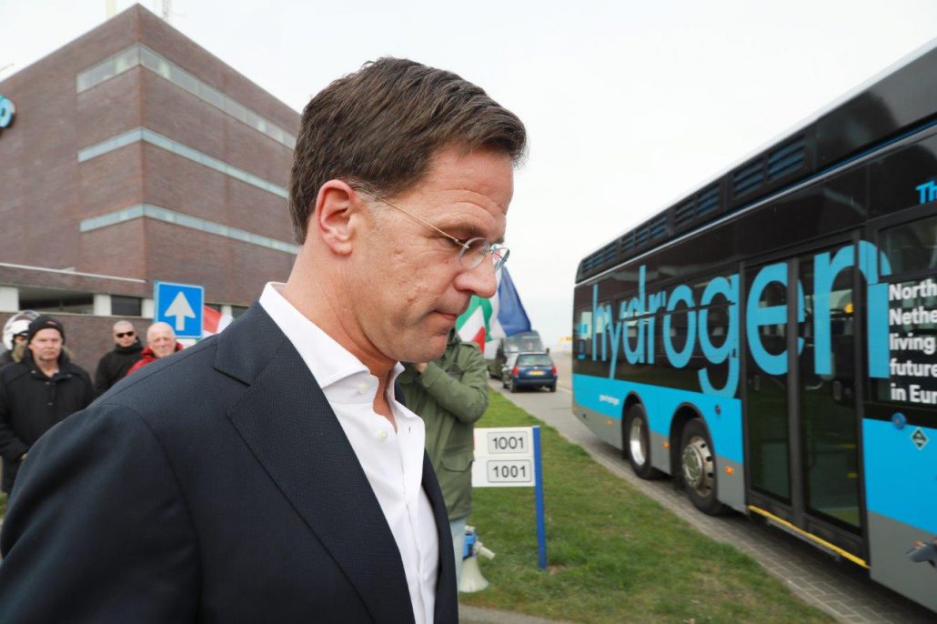 Premier Rutte verlaat Groningen Seaports en stapt de waterstofbus in op weg naar het Chemie Park Delfzijl
