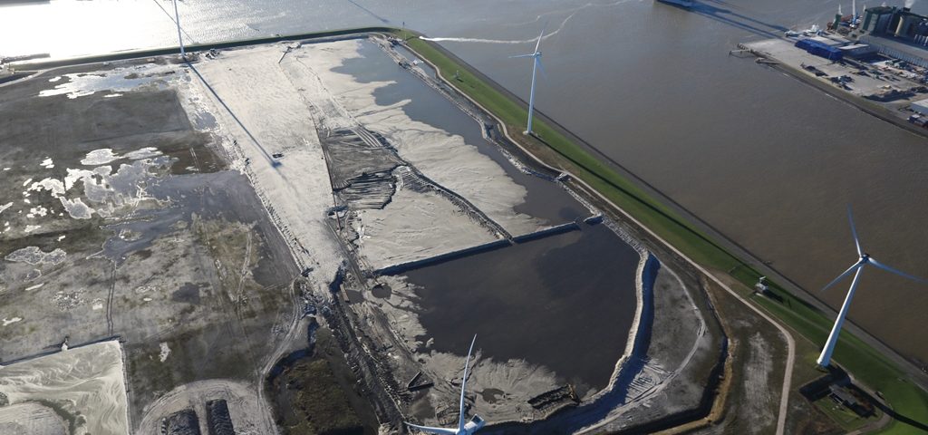 Het circa 30 hectare grote terrein van Van Merksteijn in de Eemshaven