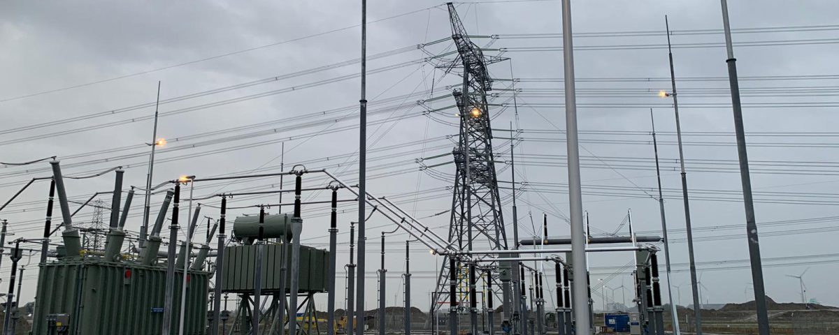 Nieuw (tijdelijk) hoogspanningsstation van TenneT in de Eemshaven