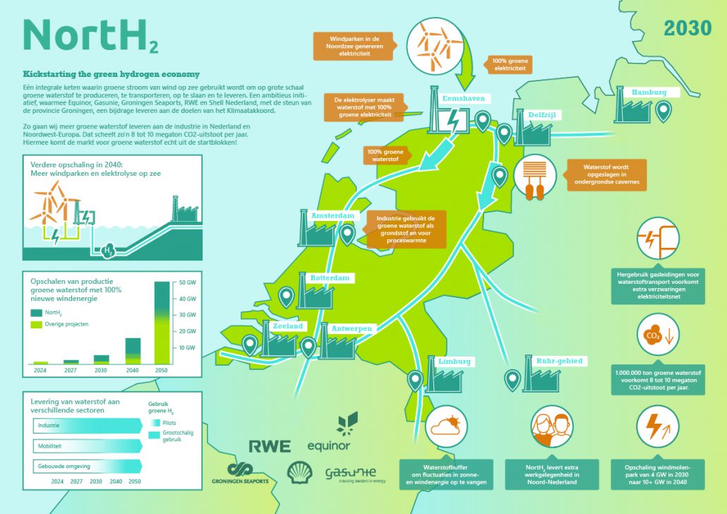 In navolging op de lancering van het NortH2-project op 27 februari 2020, verwelkomen Gasunie, Groningen Seaports en Shell Nederland twee nieuwe partners, RWE en Equinor. Deze partijen zullen bijdragen aan de internationale ambitie om grensoverschrijdend groene waterstof te gaan leveren. Het consortium wil een leidende positie nemen in het versnellen en opschalen van de ontwikkeling van de waterstofmarkt in Noordwest-Europa.