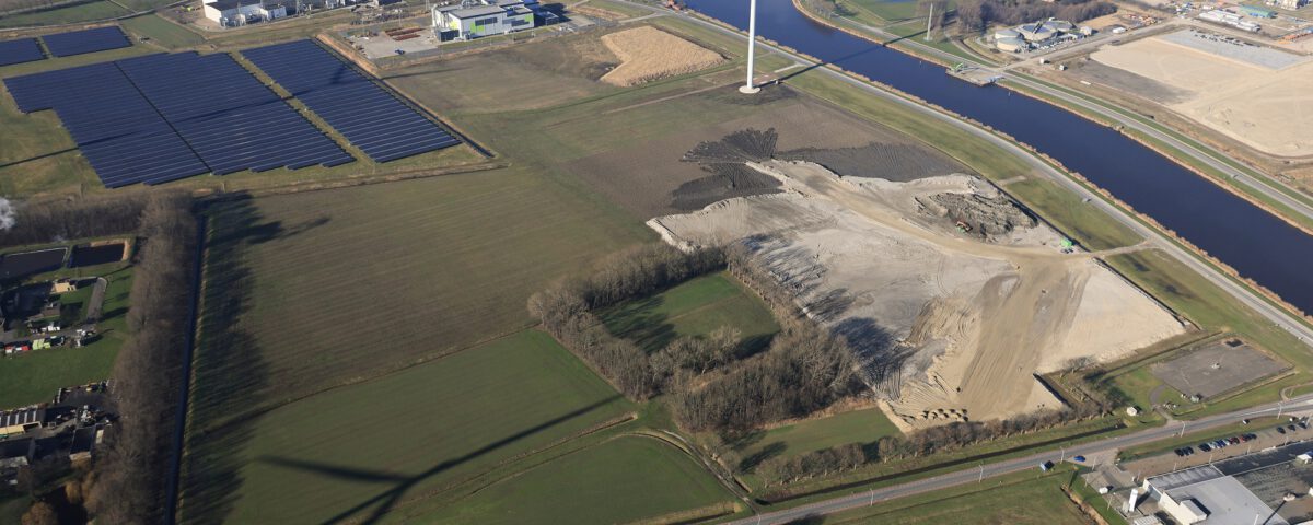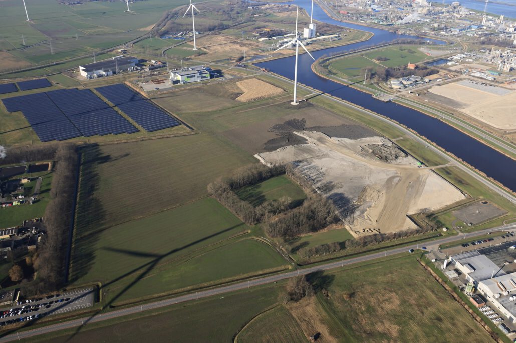 Het met zeezand opgehoogde gebied op het industrieterrein Oosterhorn-Zuid.