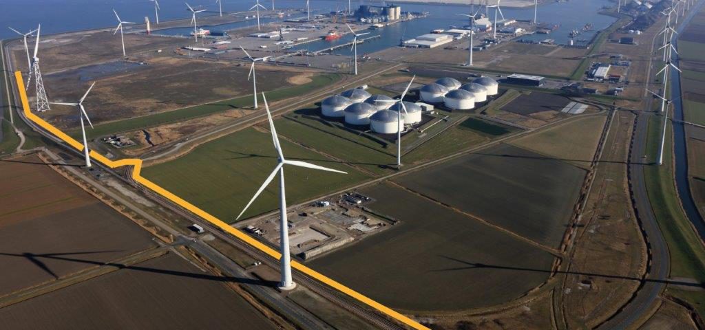 Impressie van het tracé van de nieuwe rondweg aan de westkant van de Eemshaven