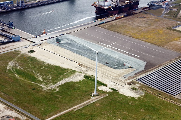 Er is de laatste maanden hard gewerkt om het terrein van BOW Terminal aan de Wilhelminahaven bedrijfsklaar te maken. Inmiddels is de volledige 100.000 ton Noors graniet door zelflossende schepen aangevoerd. Het volledige terrein ter grootte van 10 hectare heeft daarmee een sterkte van 30 ton/m2.