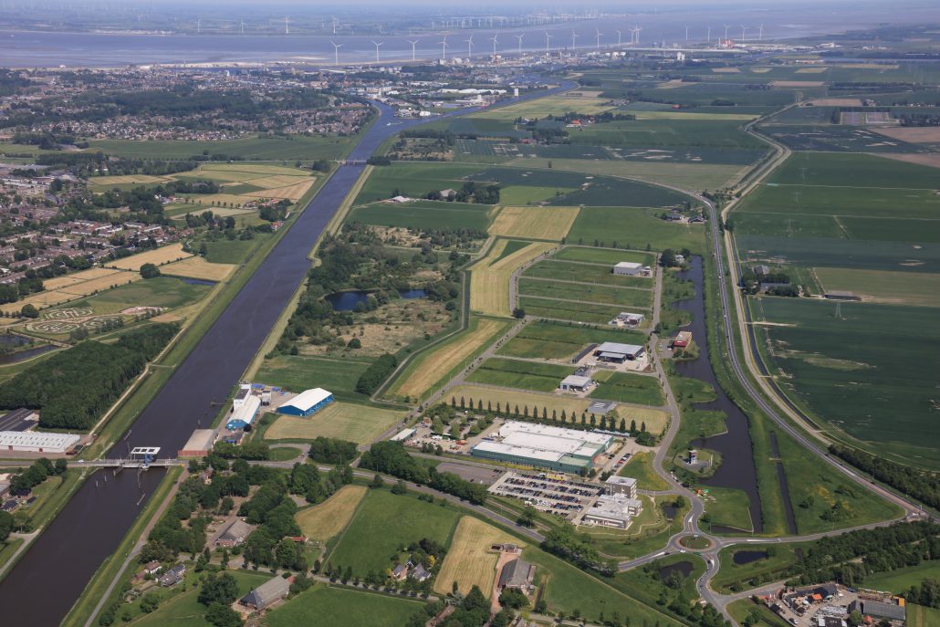 De weg N33 (rechts) bij Fivelpoort richting de groene chemie in Delfzijl (foto: Groningen Seaports)